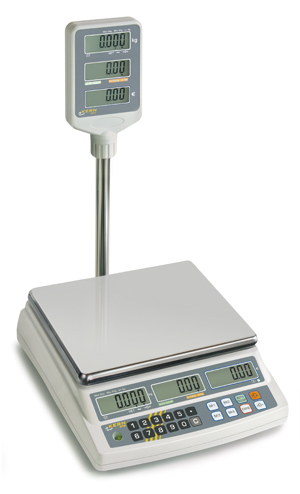 • podsvětlený displej na stojanu, otočený, výška 540 mm, 3 řádky - hmotnost, jednotková cena, celková cena